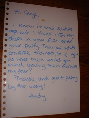 Na quinta-feira à noite quando cheguei a casa do trabalho tinha esta nota na minha porta: