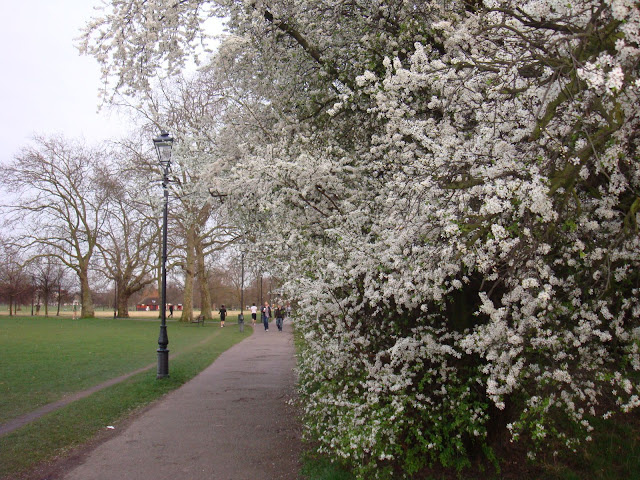 Bem e hoje o belo do passeio solarengo. Eu sei que em Portugal no momento a temperatura ronda os 25ºC e não, claro que aqui não está calor em Março, mas mesmo assim, adorei os 14ºC que tanto alegraram as ruas de Londres. Clapham Common encheu-se de pessoas a fazer pic-niqs, jogar à bola, andar de patins, passear,... Não é a praia, mas um passeio no parque em inícios de primavera sabe mesmo bem.