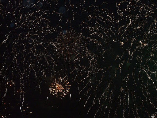Engraçado como, apesar de já cá estar há uns anos, ainda acho estranho esta coisa de se ter fogos de artifício pelas 9h da noite, ou mais precisamente 9:45h. Sem dúvida que tem lógica. Afinal é domingo, mas acho que em Portugal nunca vi fogos de artifício tão cedo quanto isso. Geralmente são lá para a meia-noite que isto das 9h ainda é hora mas é do pessoal estar no café a tentar decidir se vai ou não ver os fogos de artifício. Por cá acho que os únicos fogos de artifício que decorrem tão tarde como à meia-noite só mesmo na passagem de ano.