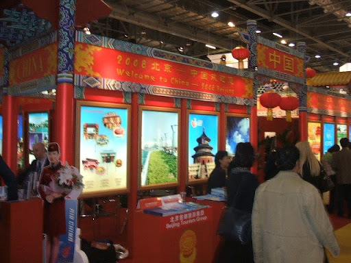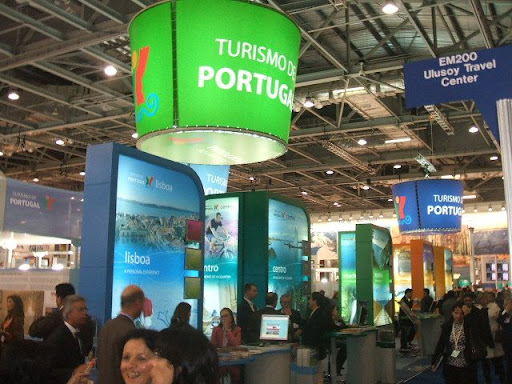 Para além dos exibitores que são servidores de serviços para as empresas do mercado das viagens e turismo, como a minha, a maioria dos stands são dedicados a cada país em que cada qual tenta colocar algo de mais original e atraente do que o outro. O da China, por exemplo era criado com o aspecto dos tradicionais "palacetes" vermelhos, ou o das Filipinas que tem um ambiente totalmente tropical,entre tantos outros. Claro que Portugal também lá está representado, embora não com decorações tão originais, mas destaca-se bem por ter uns banners cilindricos pendurados do tecto a marcar que ali está a zona do Turismo de Portugal. Basicamente no stand Português, tal como de tantos outros países, há uma área de recepção central onde se dão as informações gerais e, ao longo do corredor estão representadas as regiões de Portugal, assim como têm também a sua presença várias agências turisticas e hoteis ou complexos turisticos.
